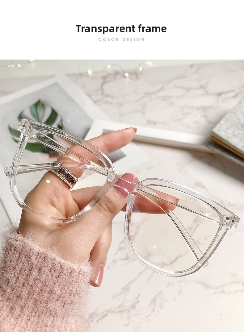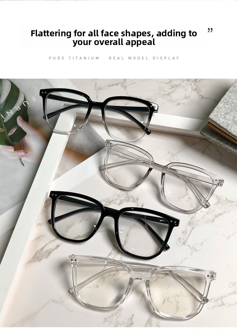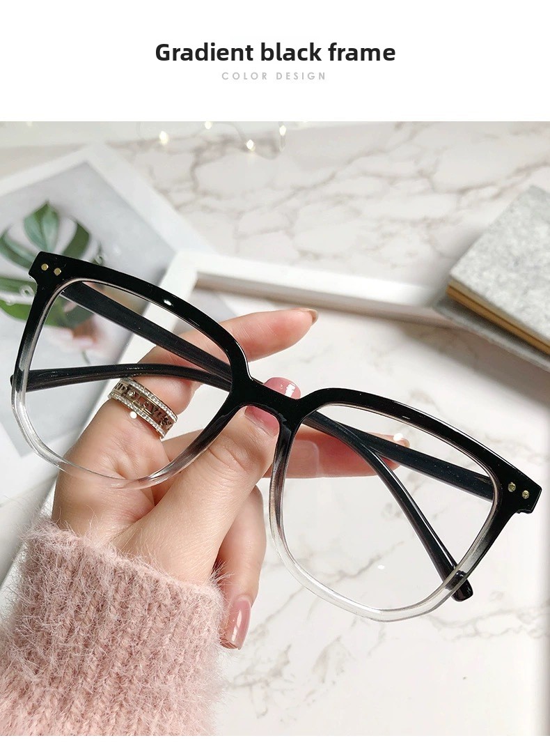 Frame colors: Black, transparent, gradient black, gradient blue, gradient tea, transparent gray (all with anti-blue light lenses)