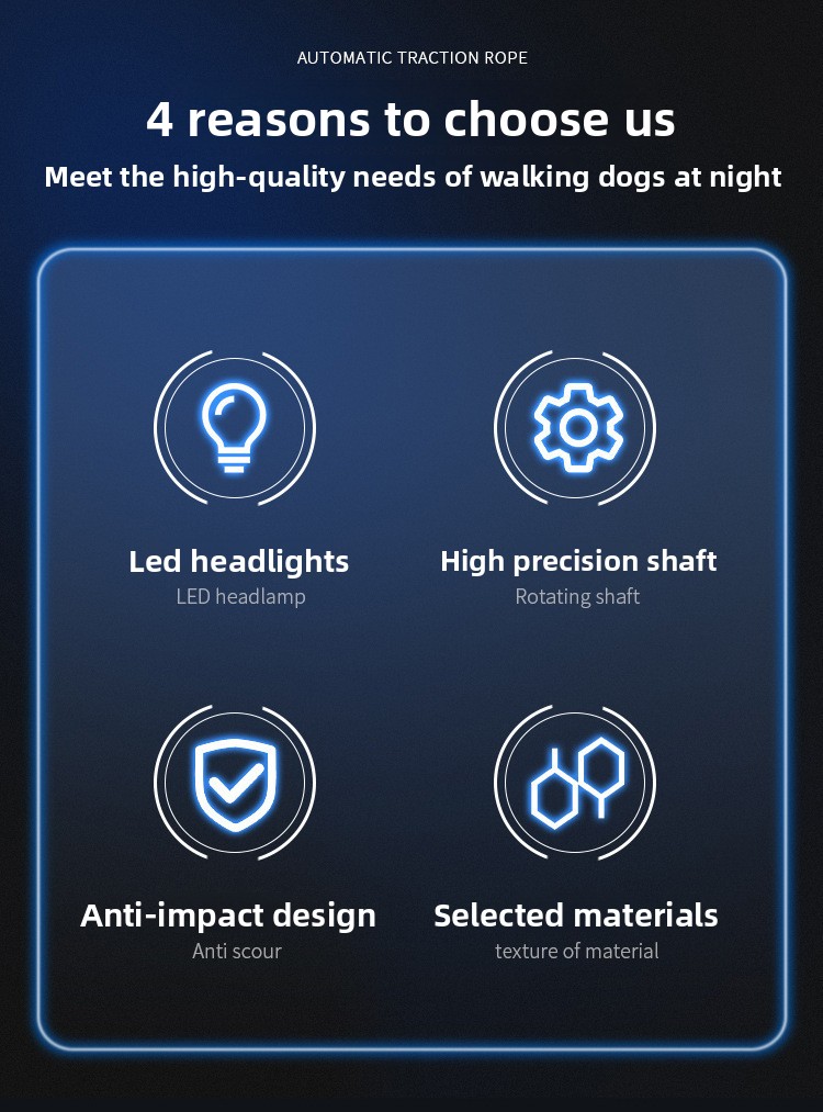 LED Light Feature: The leash includes LED lights for enhanced visibility during nighttime walks.
